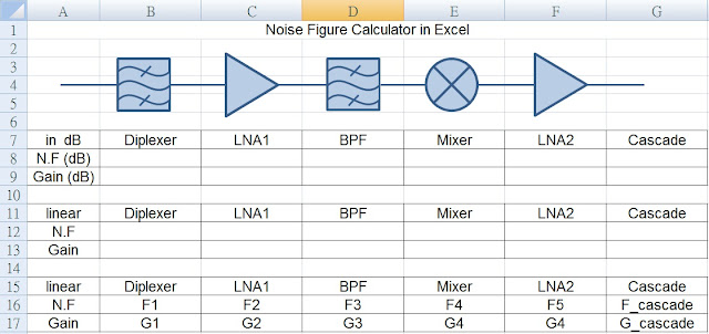 用這樣來解讀這張表格;cell B16之值為F1,這就是第一級的雜訊,其實就等於cell B12,而cell B8則是第一級的雜訊指數